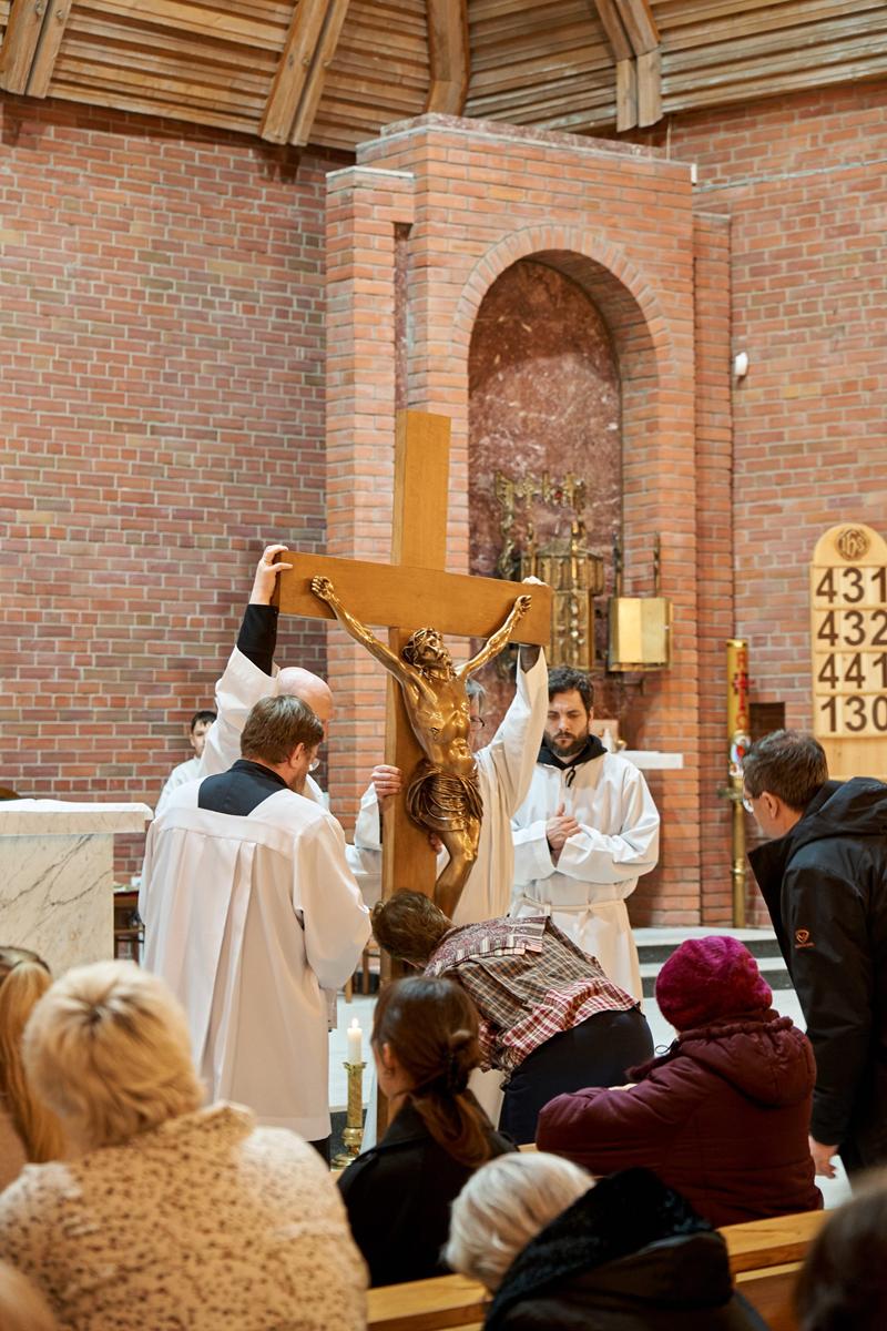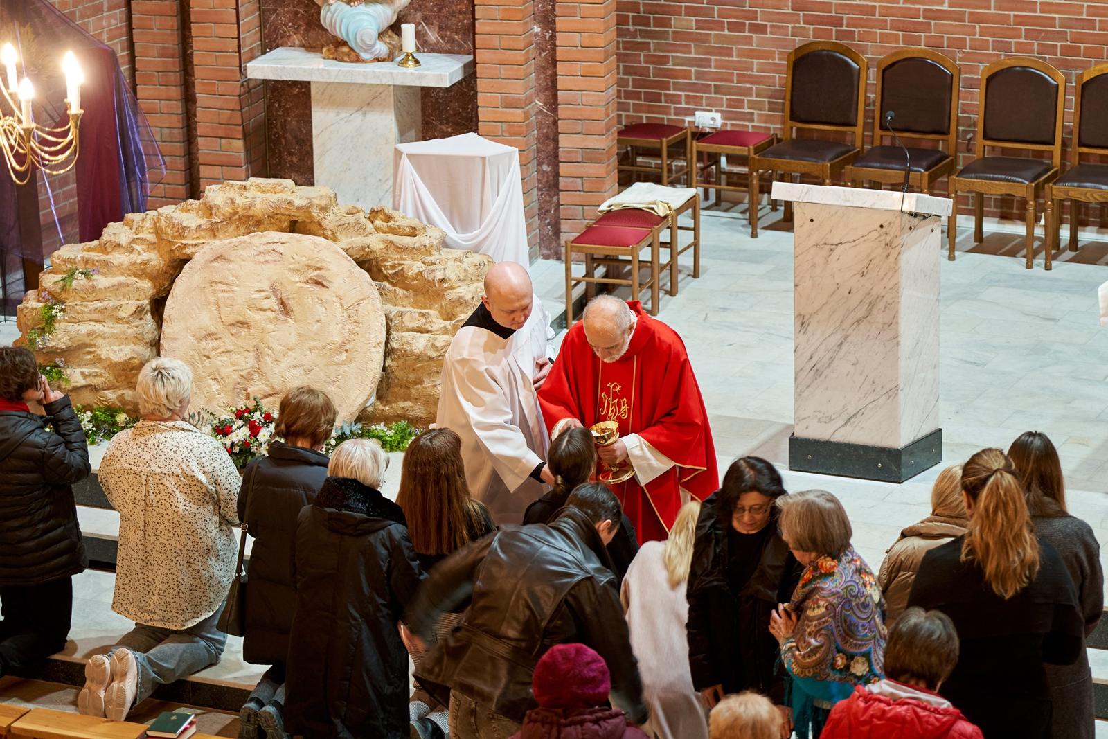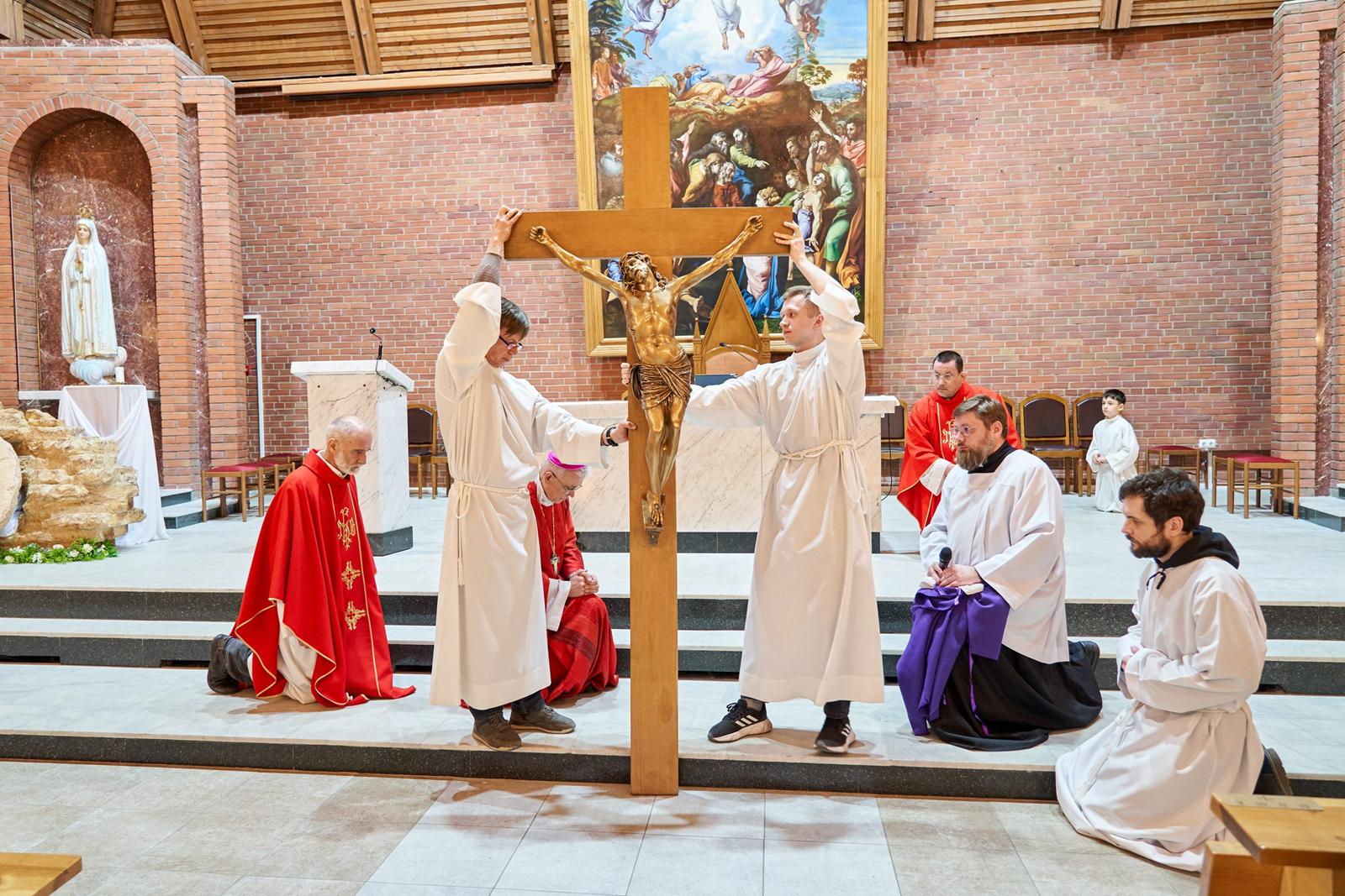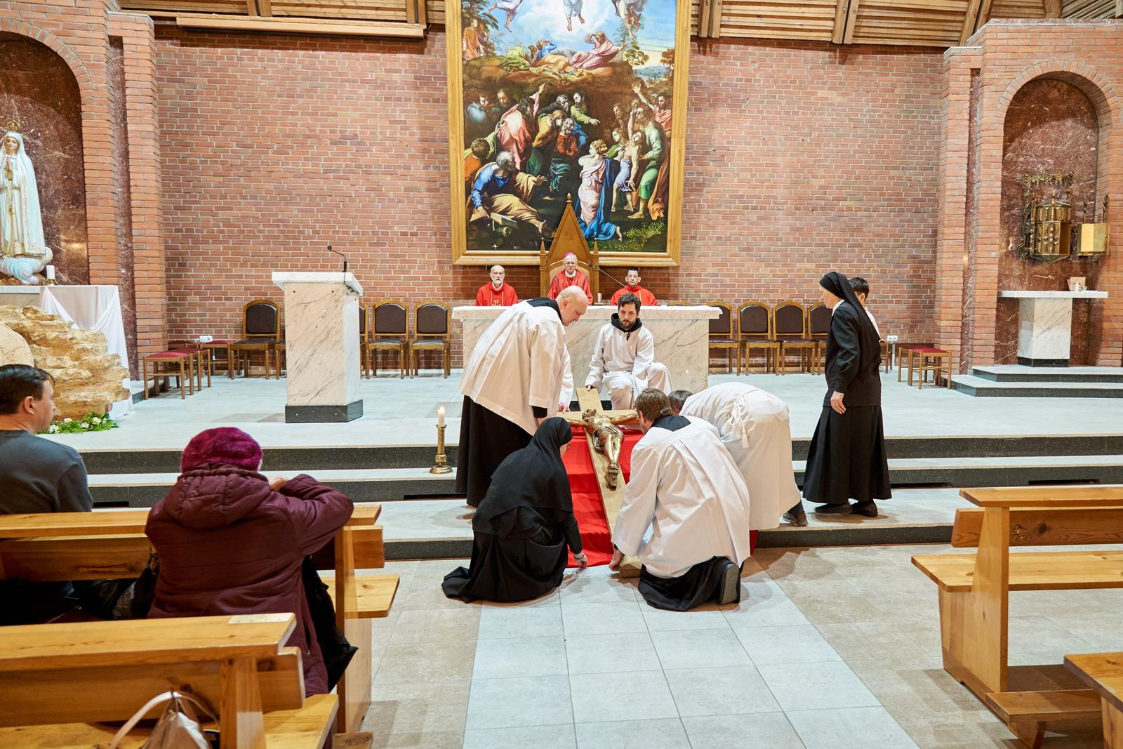 Страстная Пятница — единственный в году день, в который не служится Св. Месса. Верные, пришедшие в храм, почтить память страданий и смерти их Господа, Иисуса Христа, причащаются Святыми Дарами, оставшимися от Мессы Воспоминания Тайной Вечери в Великий четверг.