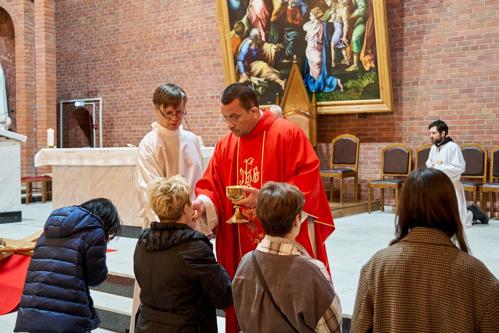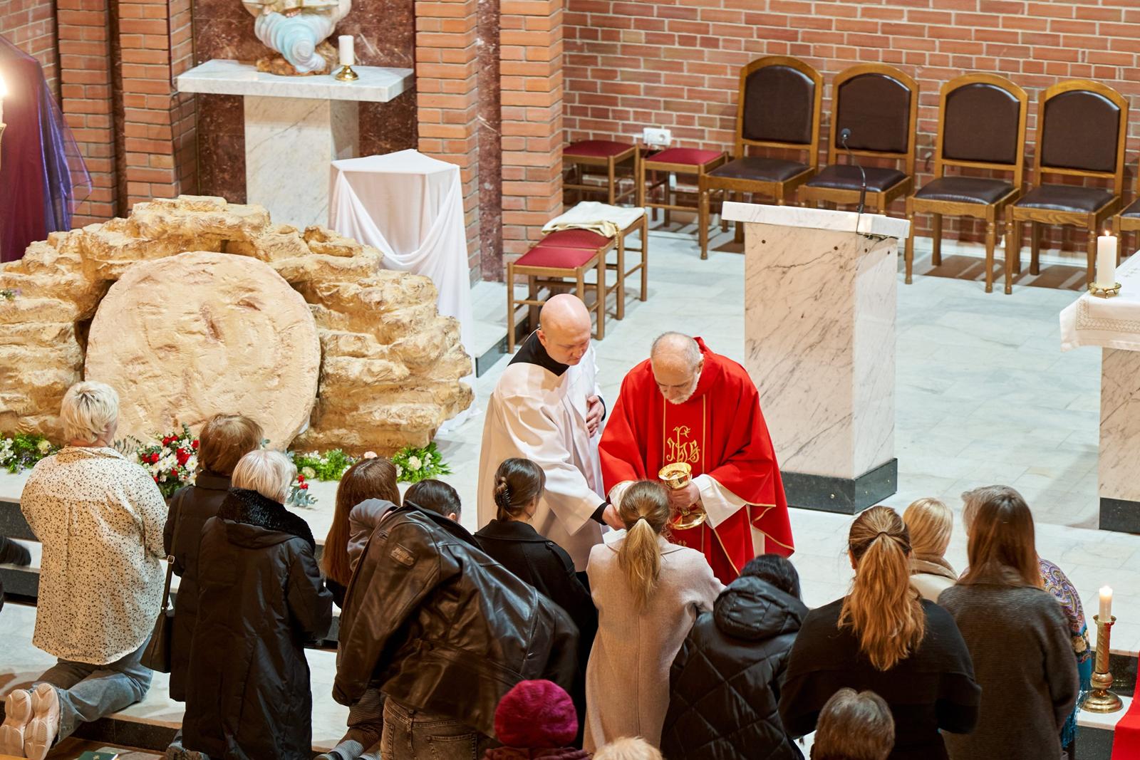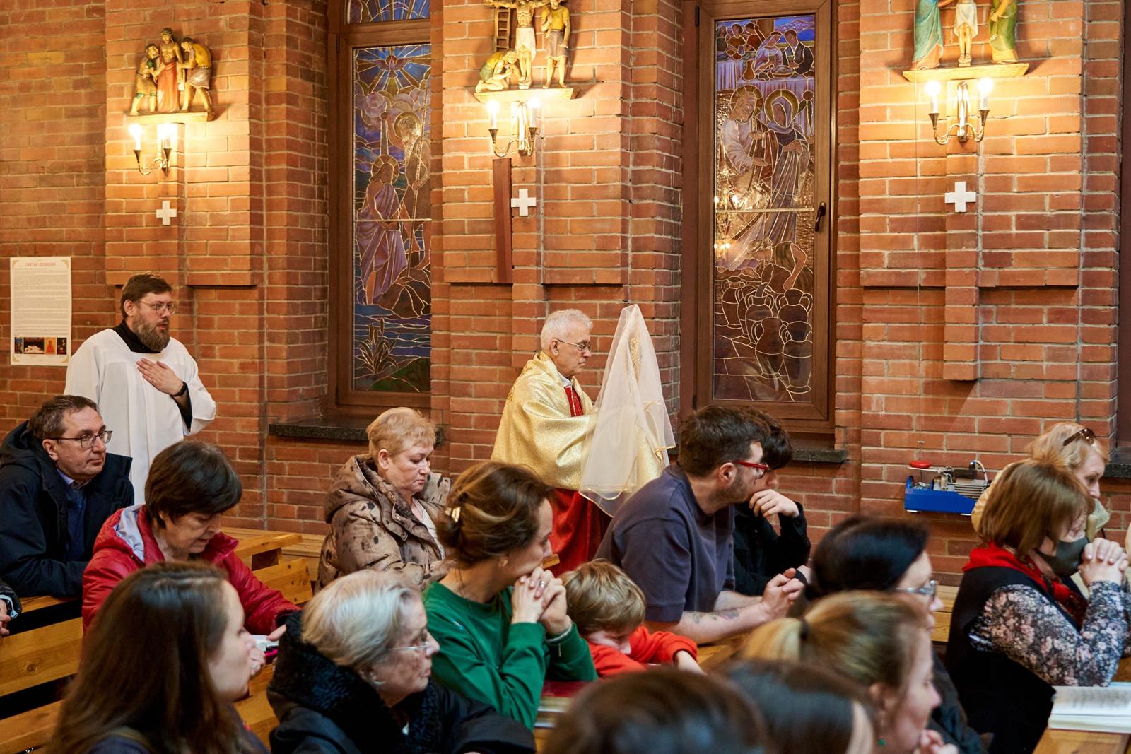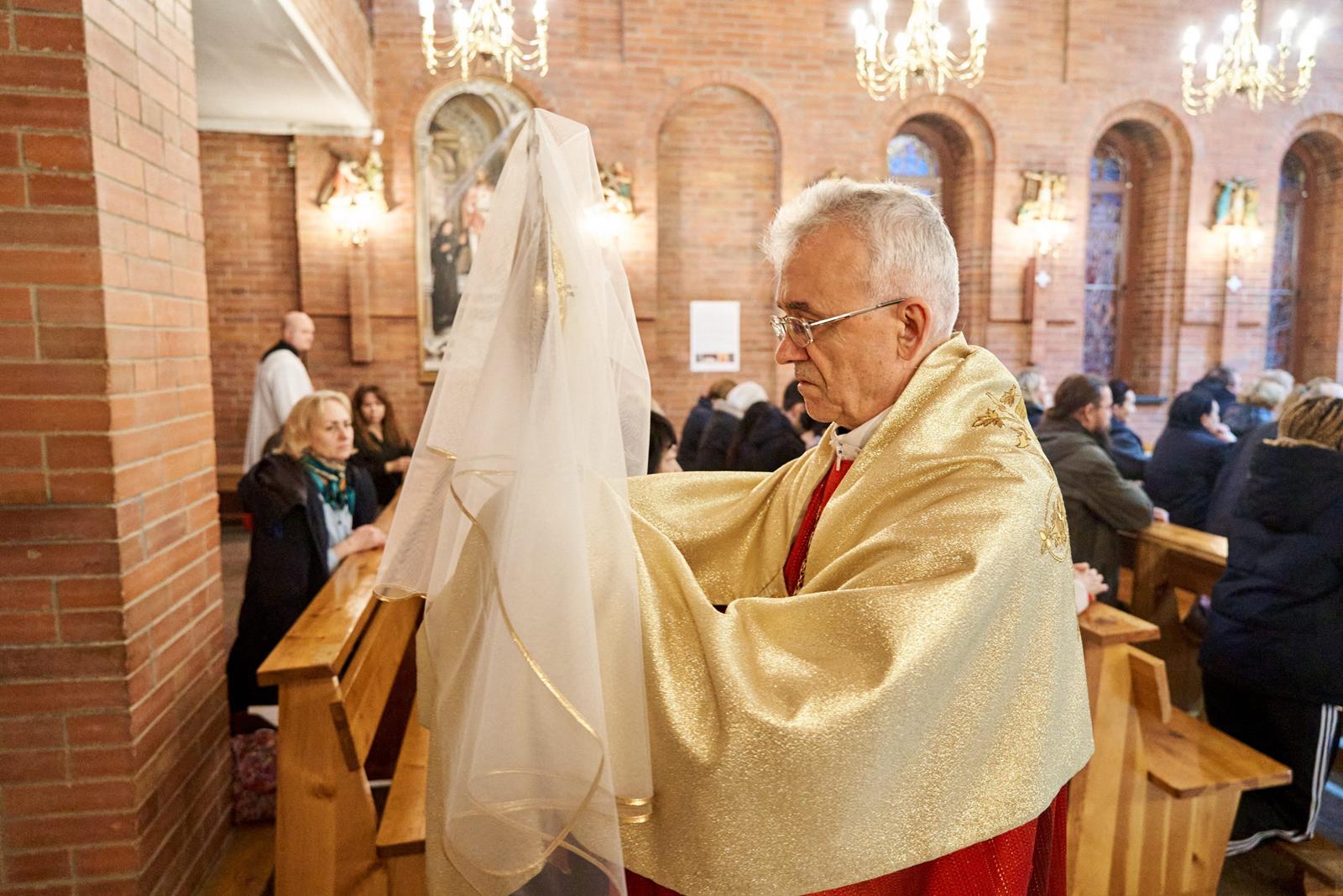 Страстная Пятница — единственный в году день, в который не служится Св. Месса. Верные, пришедшие в храм, почтить память страданий и смерти их Господа, Иисуса Христа, причащаются Святыми Дарами, оставшимися от Мессы Воспоминания Тайной Вечери в Великий четверг.