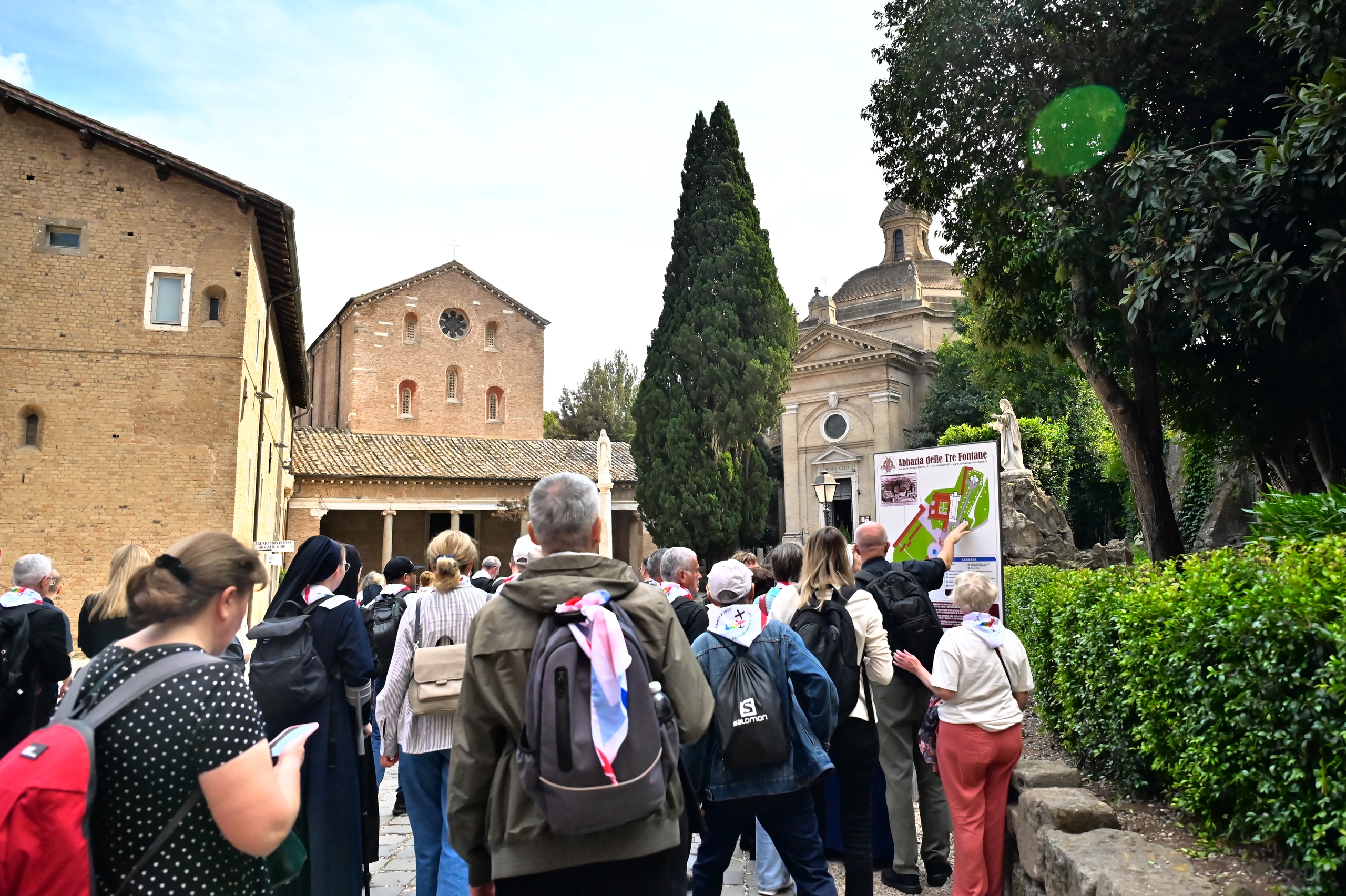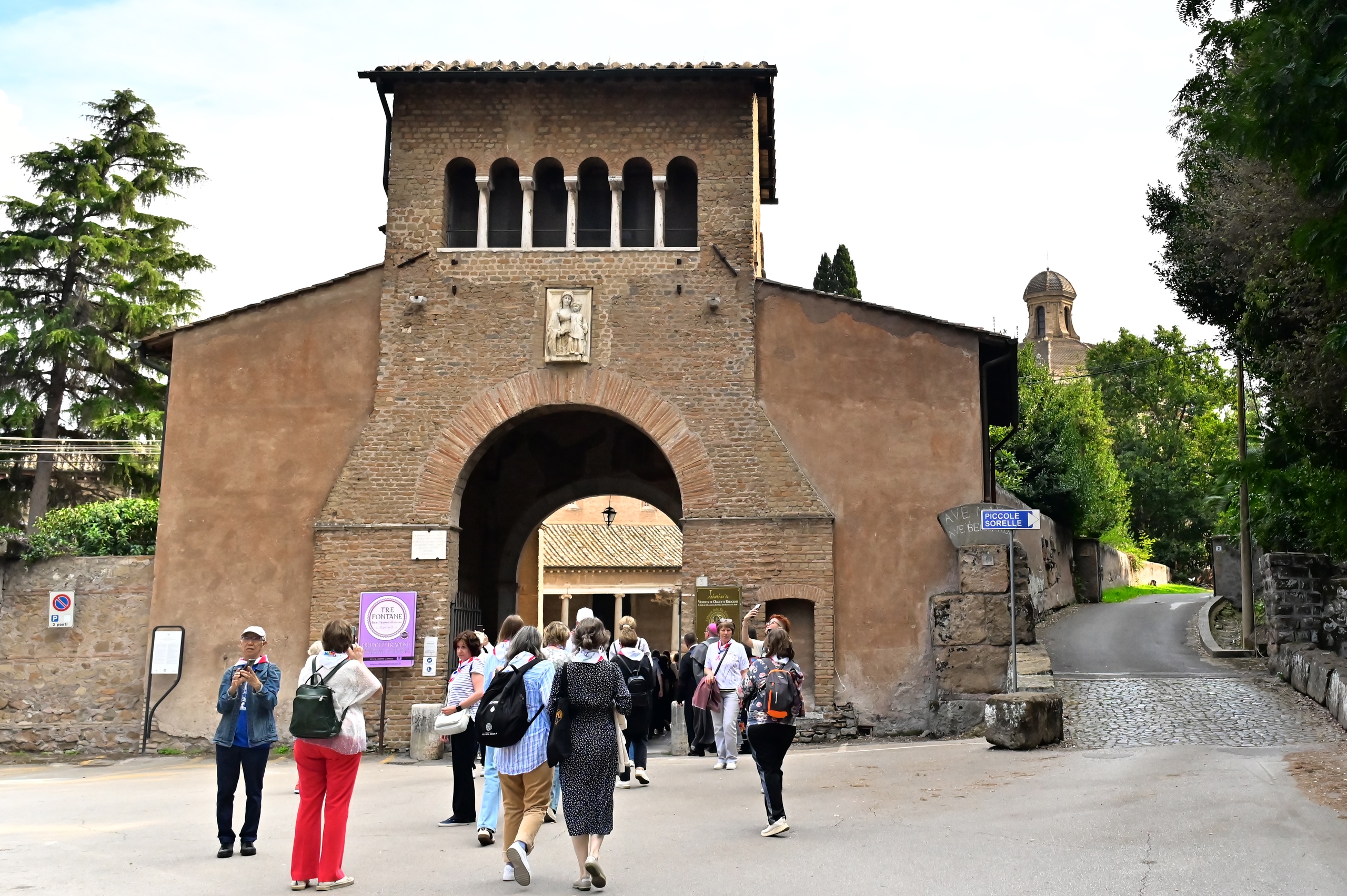 Следующим пунктом программы второго дня было посещение аббатства Тре-Фонтане, места, где апостол Павел принял мученическую смерть через отсечение головы и где узник ожидал своей казни (Scala coeli). По преданию, его отсеченная голова трижды стукнулась о землю, и в этих местах стали бить ключи, что и дало название аббатству.