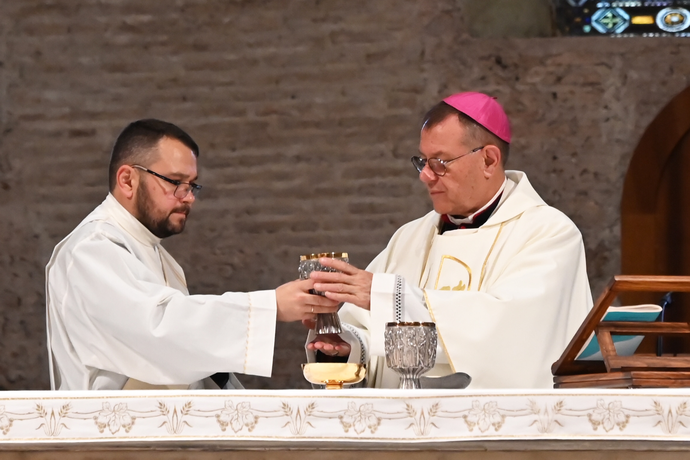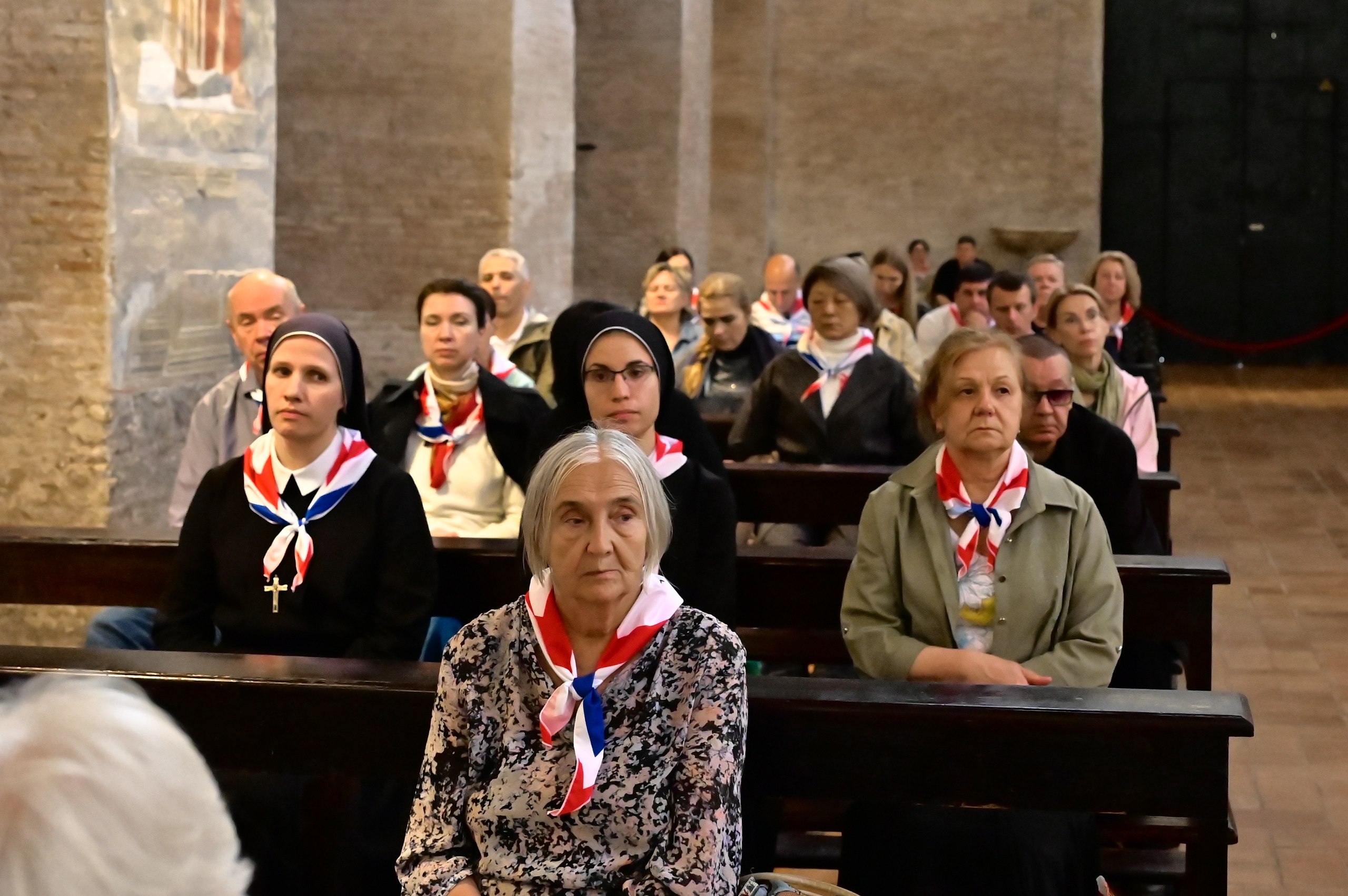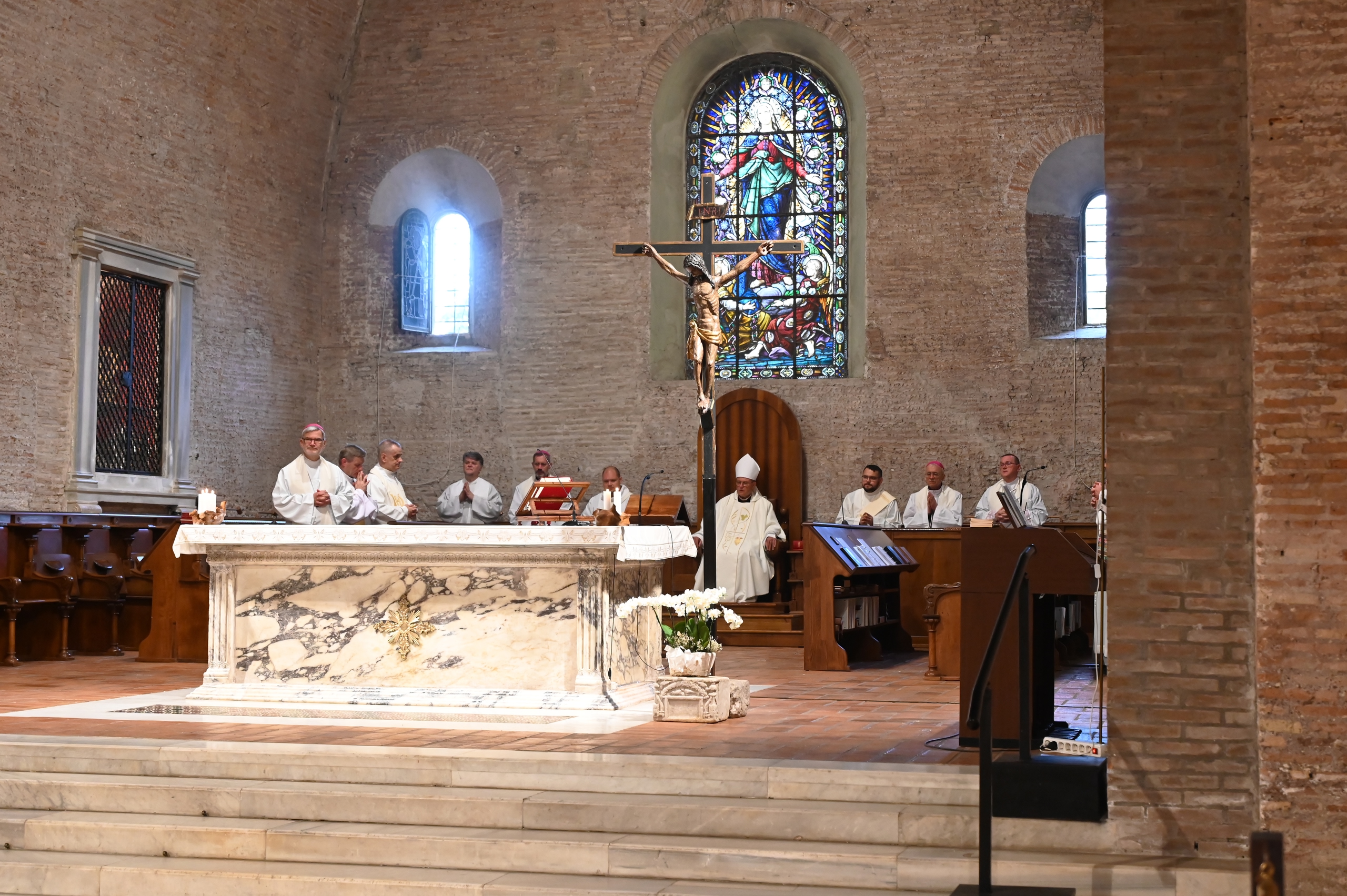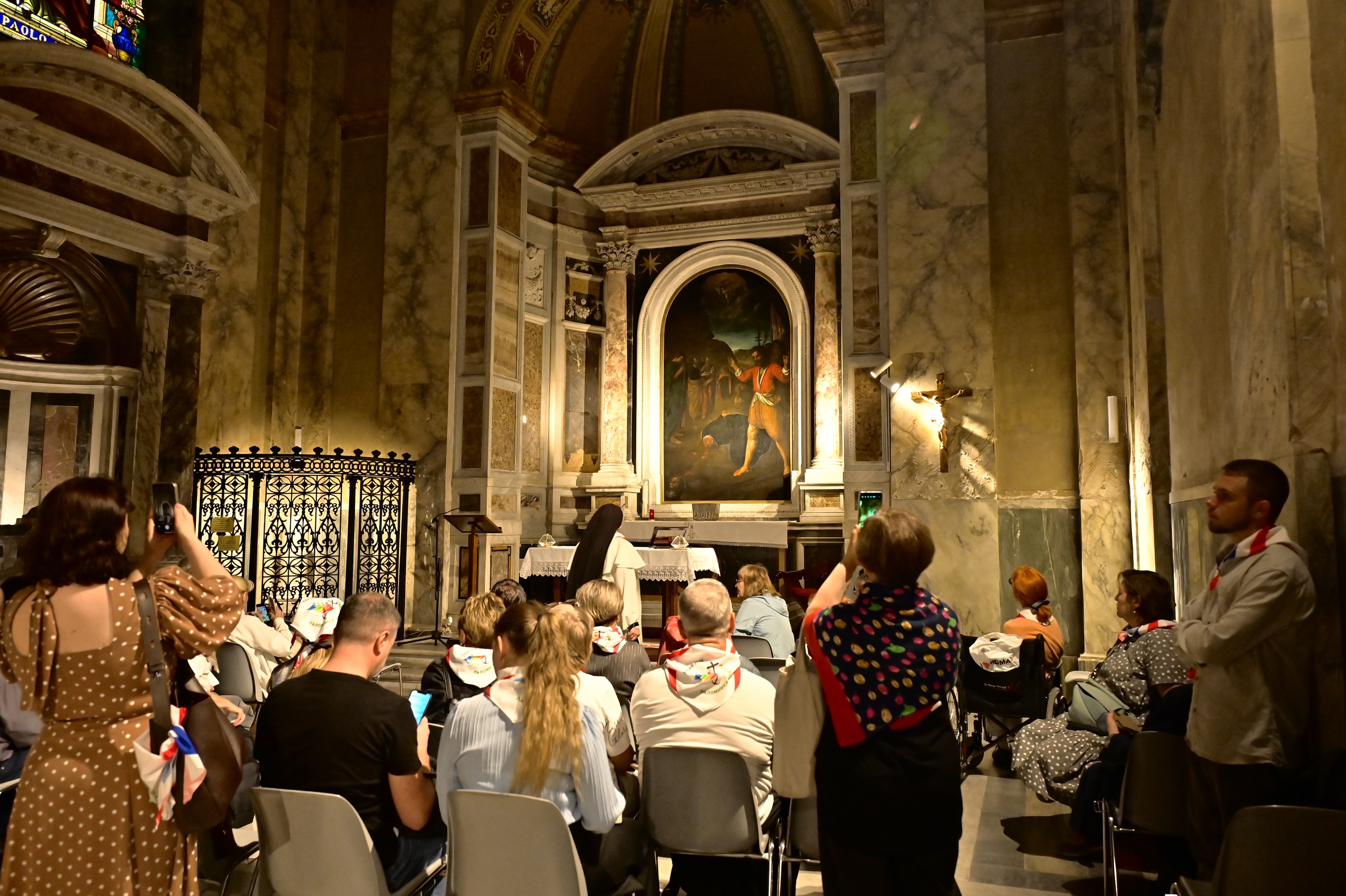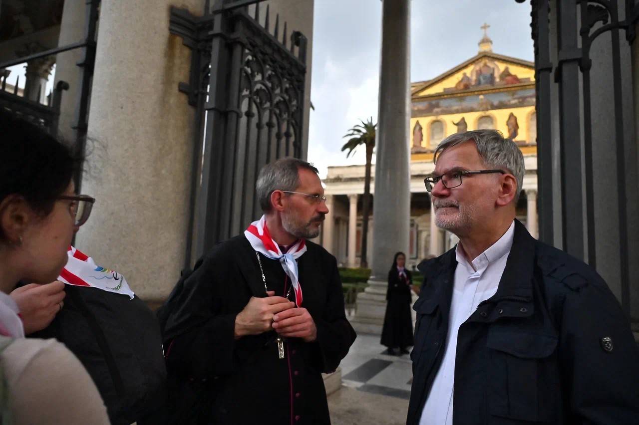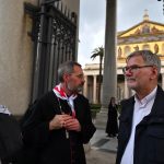 Святая Месса под предстоятельством Архиепископа, отслуженная в аббатстве, стала своеобразной духовной ступенькой к заключительному пункту этого дня – посещению базилики Сан-Паоло-фуори-ле-Мура (Святого Павла за стенами), чтобы пройти через Святые врата и получить индульгенцию и приклонить колени перед местом захоронения останков Святого Павла.