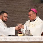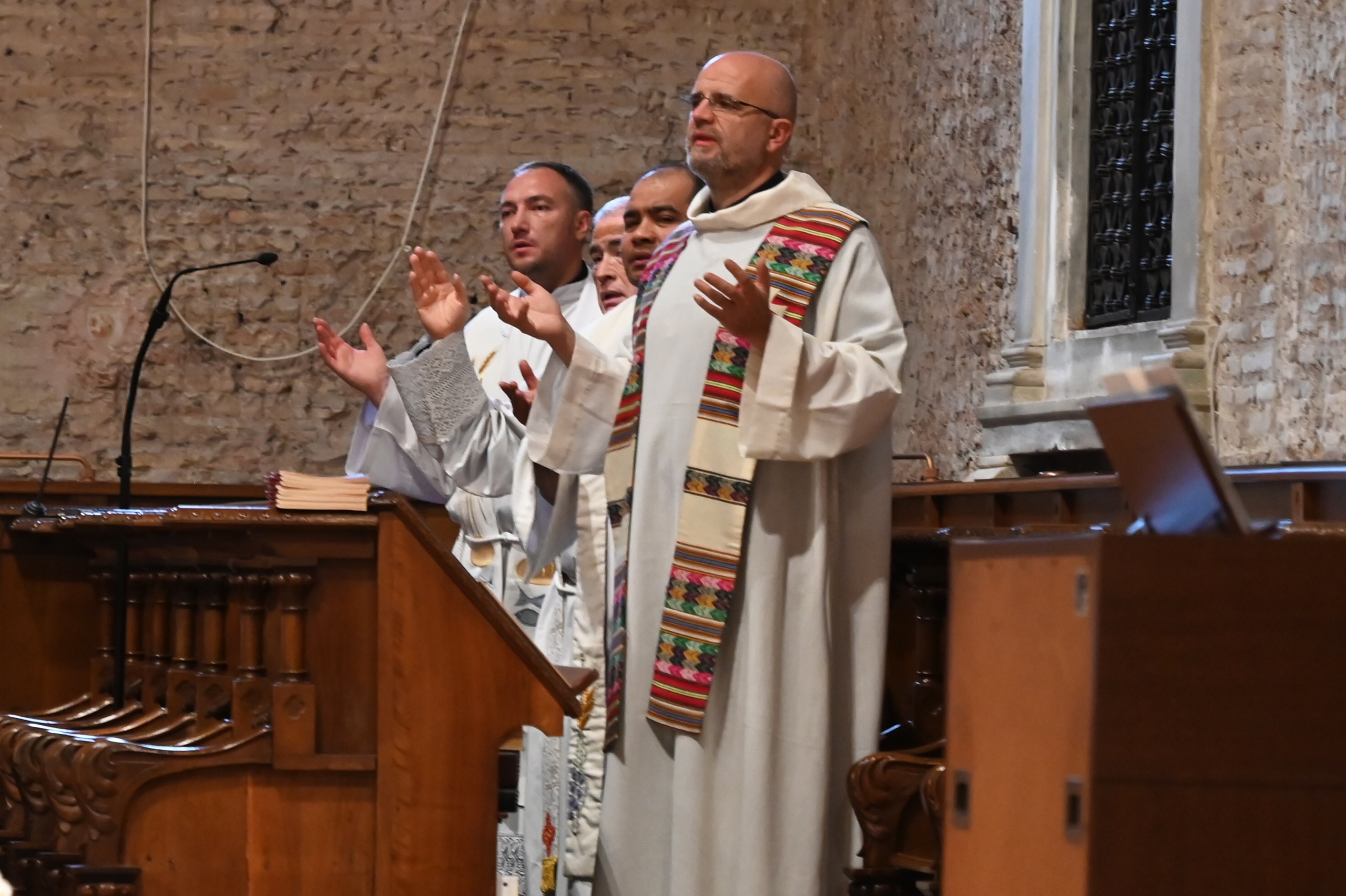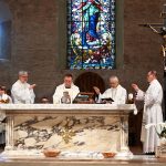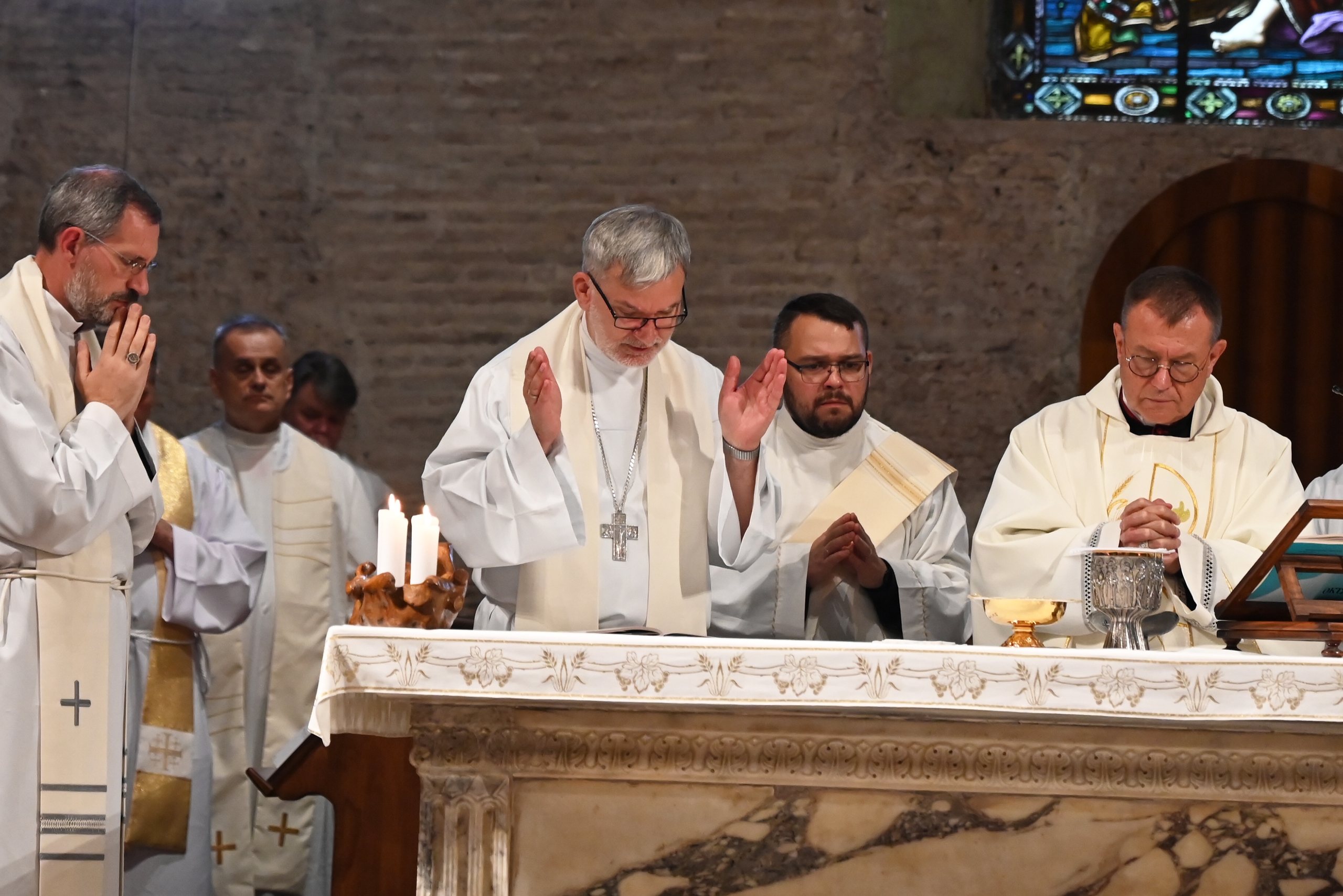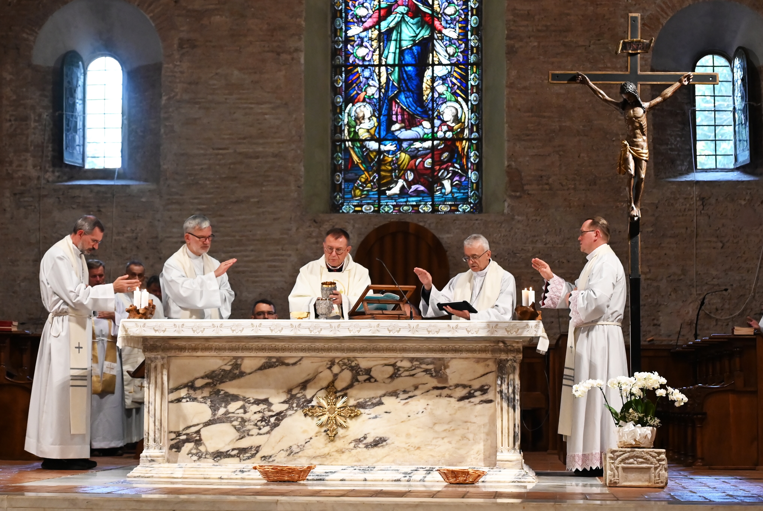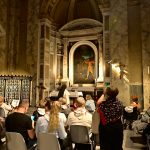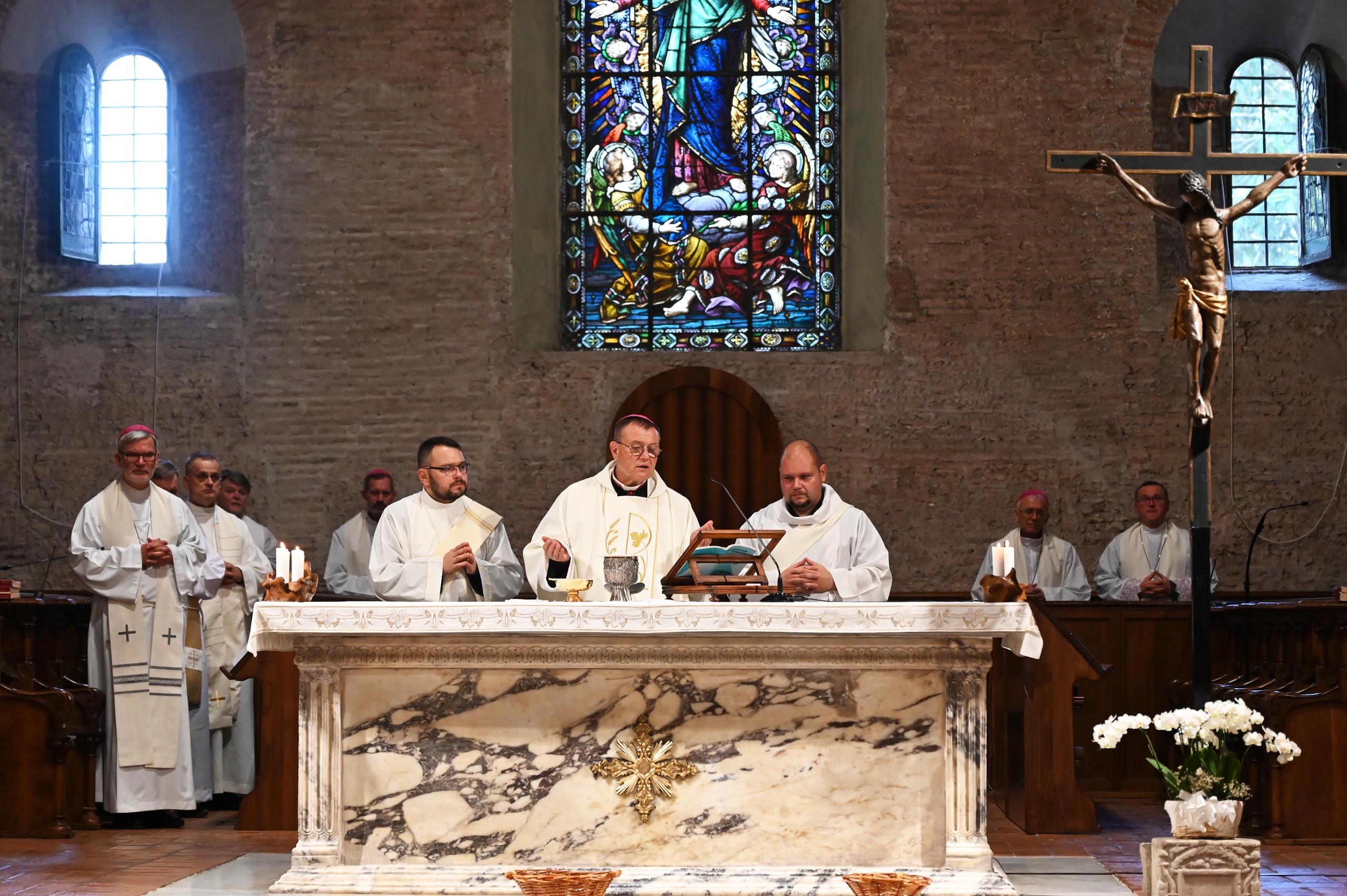 Святая Месса под предстоятельством Архиепископа, отслуженная в аббатстве, стала своеобразной духовной ступенькой к заключительному пункту этого дня – посещению базилики Сан-Паоло-фуори-ле-Мура (Святого Павла за стенами), чтобы пройти через Святые врата и получить индульгенцию и приклонить колени перед местом захоронения останков Святого Павла.