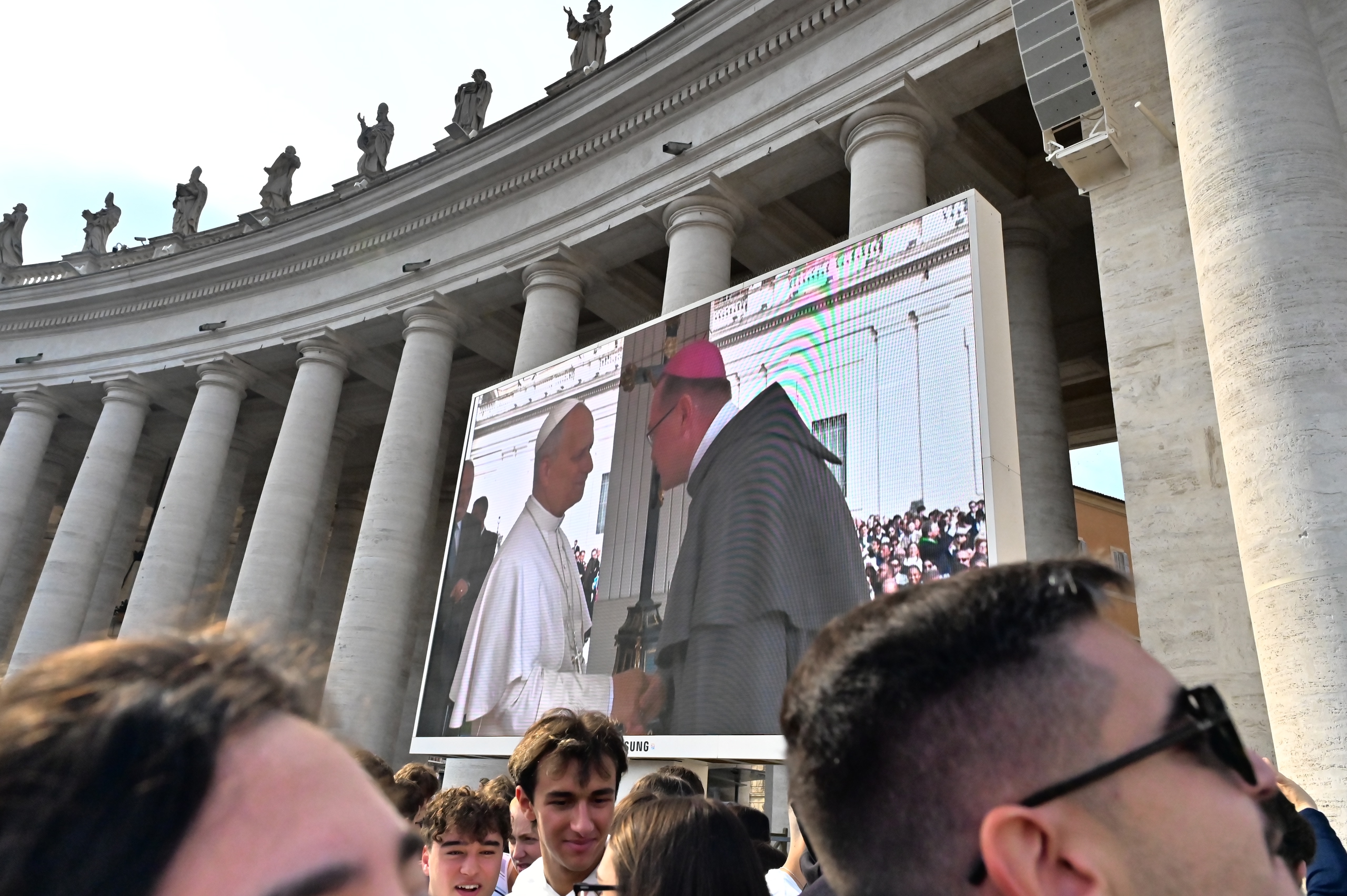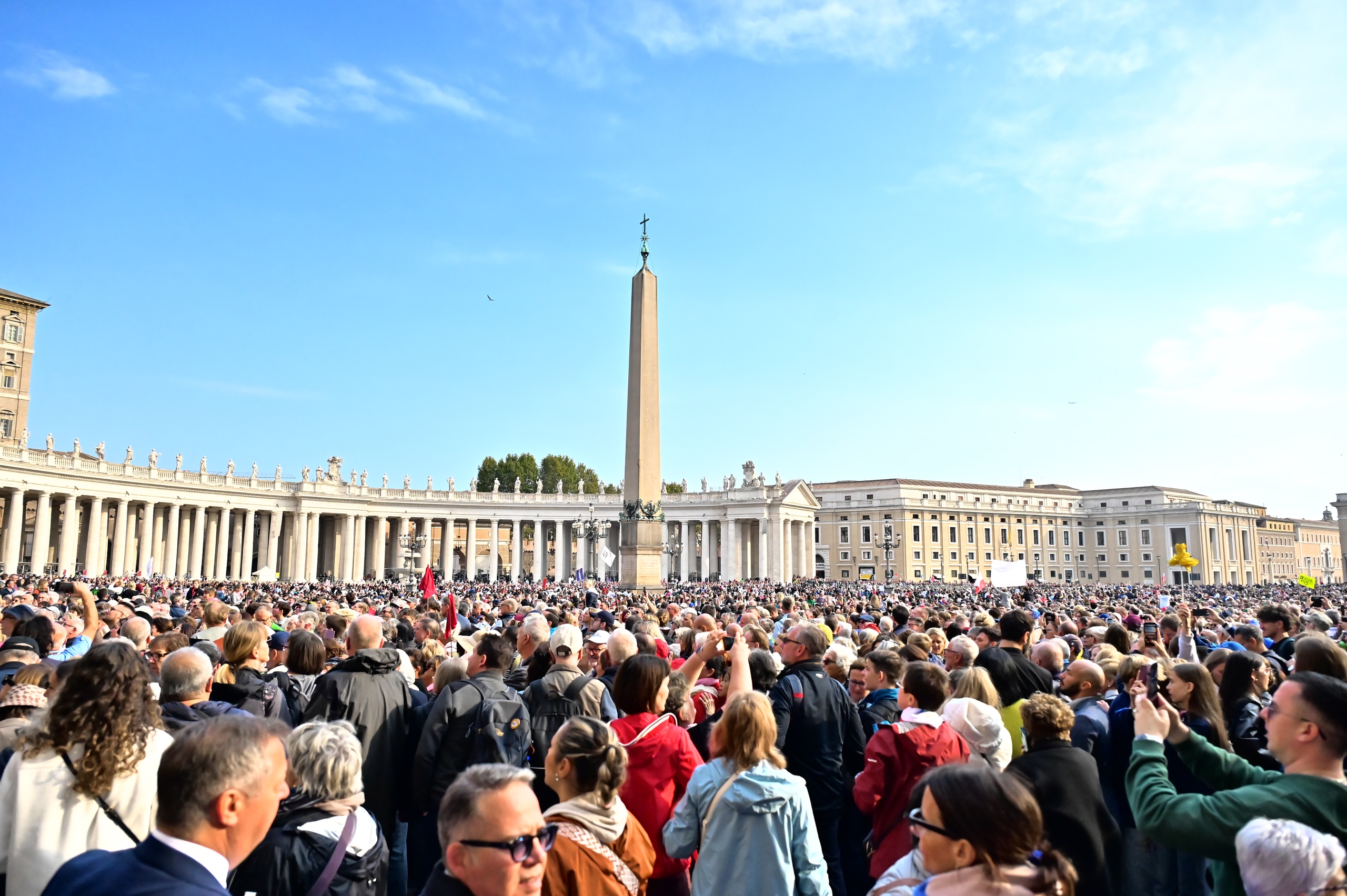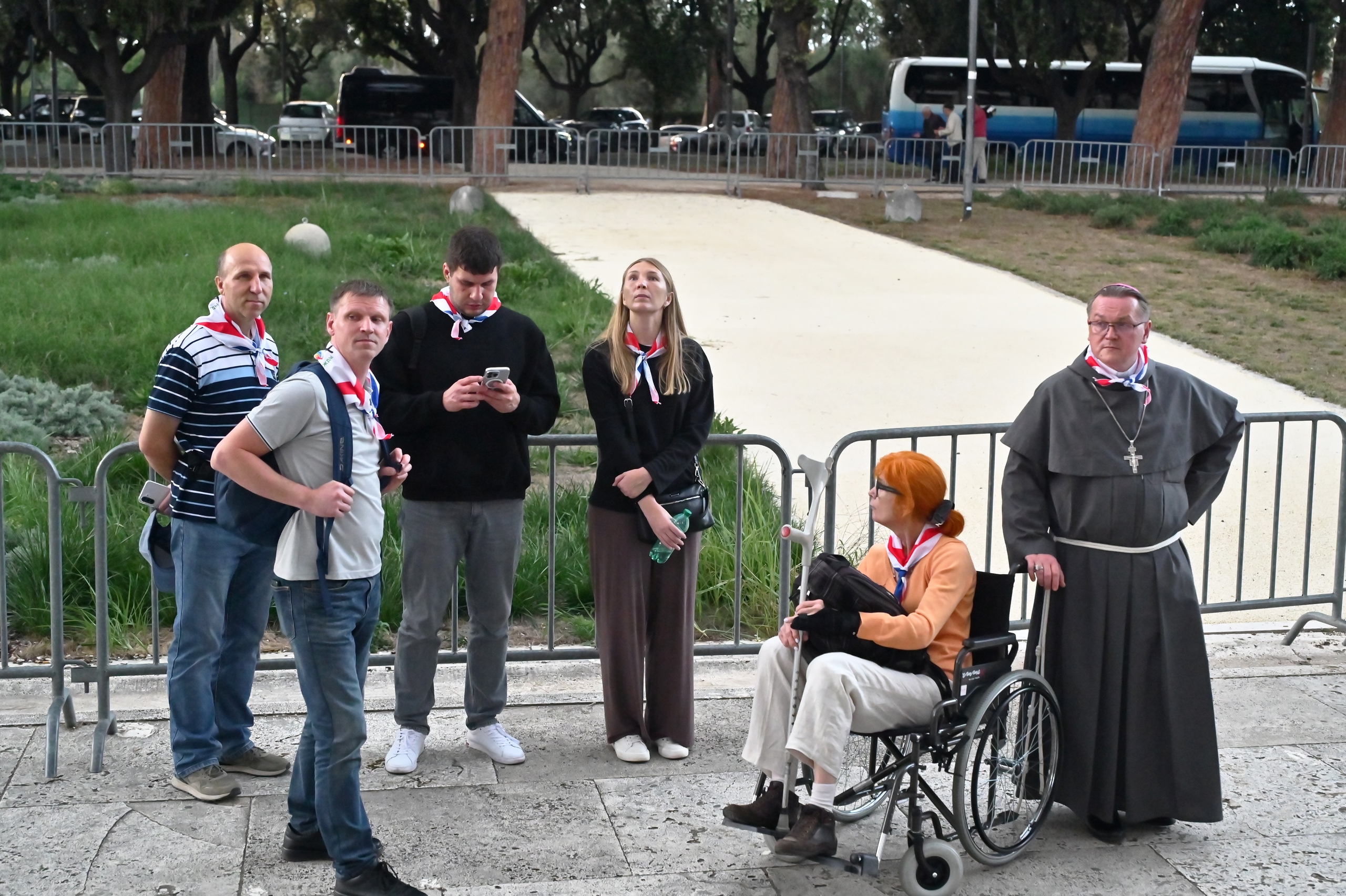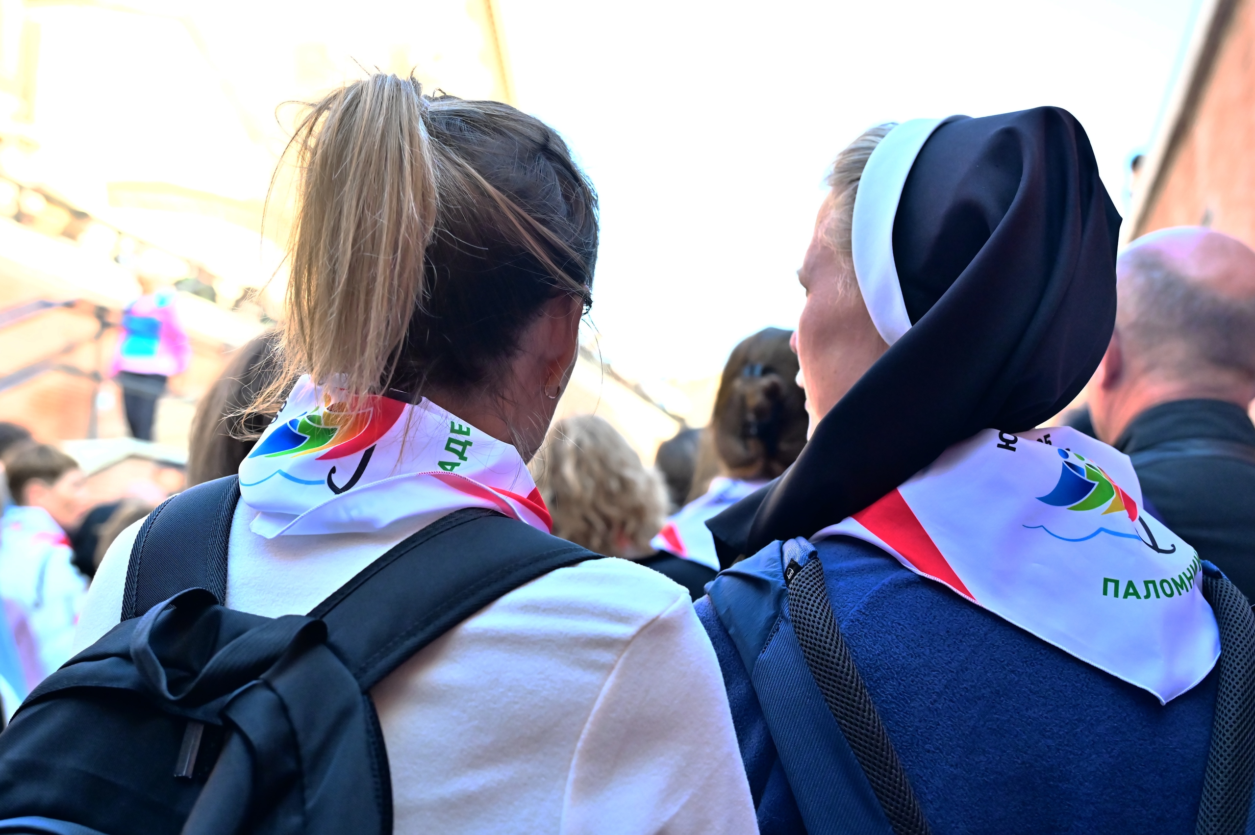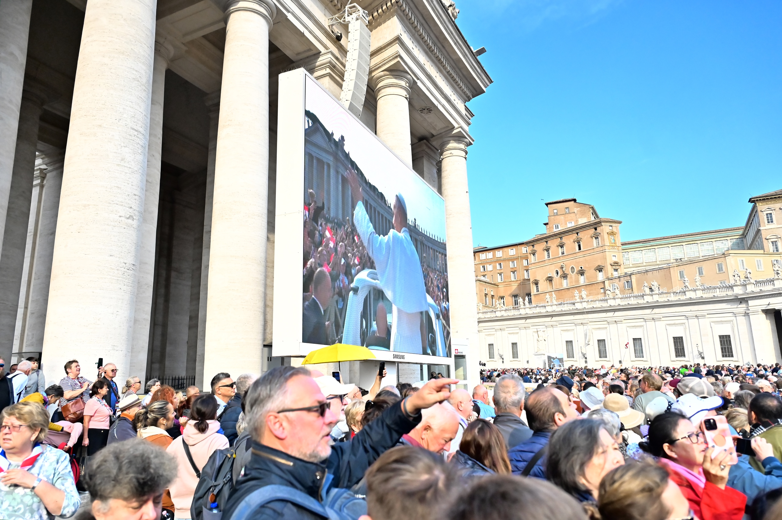 Молитва Юбилейного года стала прологом второго дня Всероссийского паломничества в Рим и подготовкой к Общей аудиенции с Папой Львом XIV. На площади Святого Петра паломники из разных стран с энтузиазмом приветствовали Понтифика, а также своих епископов, сопровождающих группы и сидевших во время аудиенции близ Епископа Рима.